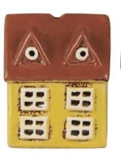 Efni: Steinleir, gult með brúnu þaki